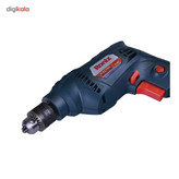 دریلها ازجمله ابزارهای کاربردی محسوب میشوند که وجود آنها در هر خانهای موردنیاز است. این دستگاهها انواع بسیار گوناگونی دارند و برای انجام کارهای مختلفی مورداستفاده قرار میگیرند. درصورتیکه به شکلی حرفهای با دریل کار نمیکنید، میتوانید دریلی ساده را تهیه کرده و در مواقع موردنیاز از آن استفاده کنید. محصولی که در تصویر مشاهده میکنید برای چنین منظوری بسیار مناسب است. این دستگاه دریل شرکت «رونیکس» (Ronix) است که تحت عنوان «2106B» تولید میشود. این دریل توانی برابر 400 وات داشته و با برق شهری کار میکند. سرعت گردش این دستگاه 3500-0 دور بر دقیقه بوده و با کمک کلیدی میتوانید جهت چرخش آن را تغییر دهید. این دستگاه وزن سبکی برابر 1 کیلوگرم دارد و بر اساس استاندارد CE (استاندارد اروپا) تولید میشود. شرکت رونیکس برای راحتی بیشتر کاربر، این دستگاه را به قفل سوییچ مجهز کرده است. با کمک این کلید، دیگر نیازی به نگهداشتن شاسی دریل برای سوراخکاری ندارید، سهنظام دستگاه بهطور مداوم میچرخد و شما با تسلط و قدرت بیشتری میتوانید عمل دریلکاری را انجام دهید. سهنظام این دریل از نوع 6.5 میلیمتری بوده و برای باز و بسته کردن مته باید از آچار استفاده کنید. این محصول در برابر گردوغبار نیز عایق است.